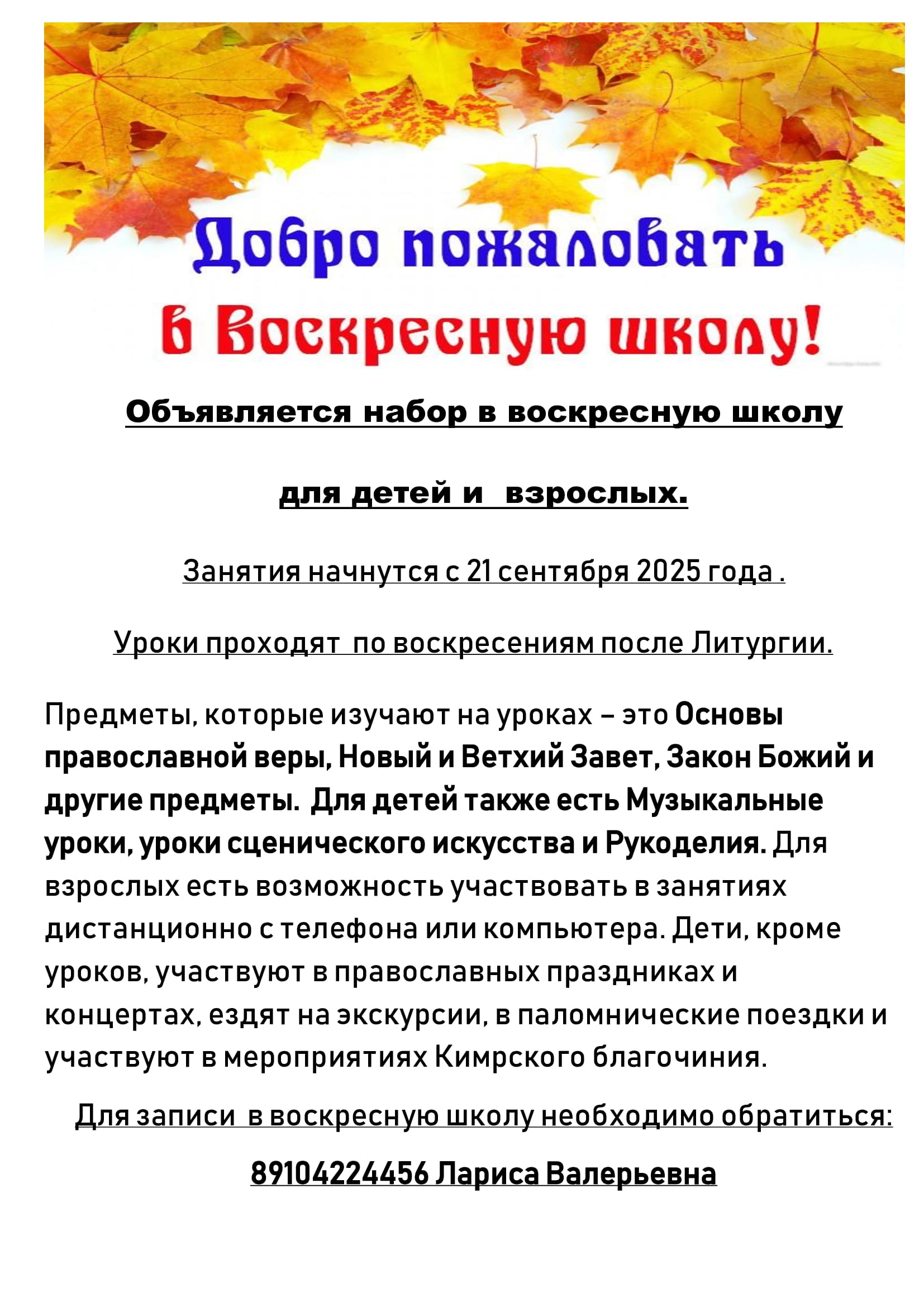ПО ВОСКРЕСЕНЬЯМ – ПОСЛЕ ОКОНЧАНИЯ БОЖЕСТВЕННОЙ ЛИТУРГИИ.ПО ВОЗНИКАЮЩИМ ВОПРОСАМ МОЖНО ОБРАЩАТЬСЯ