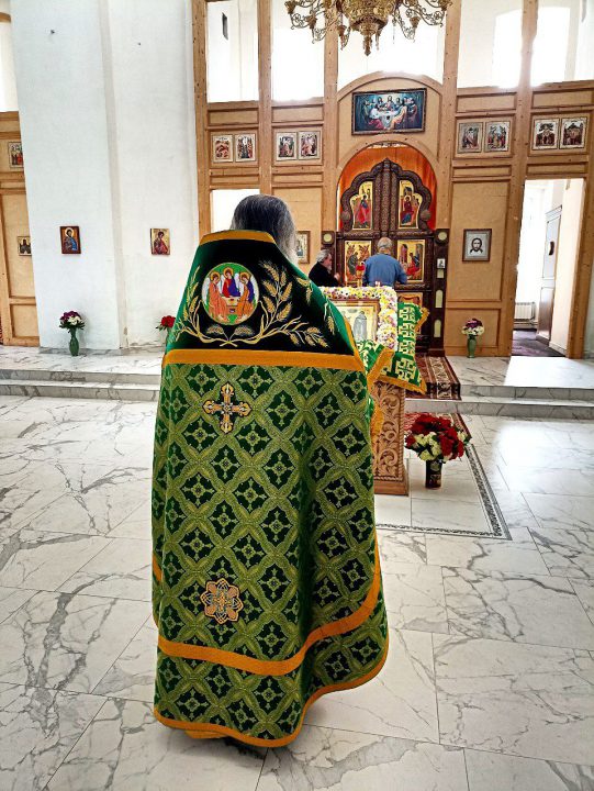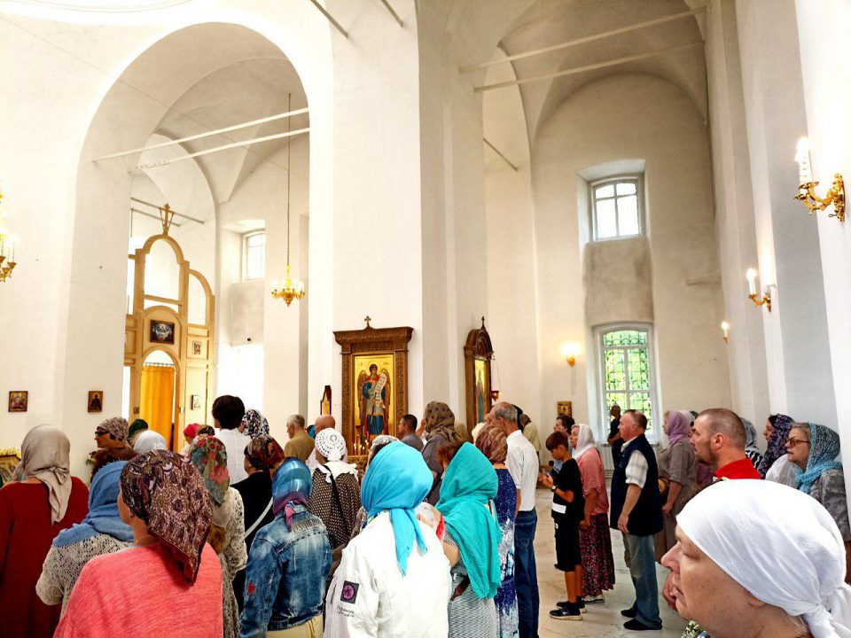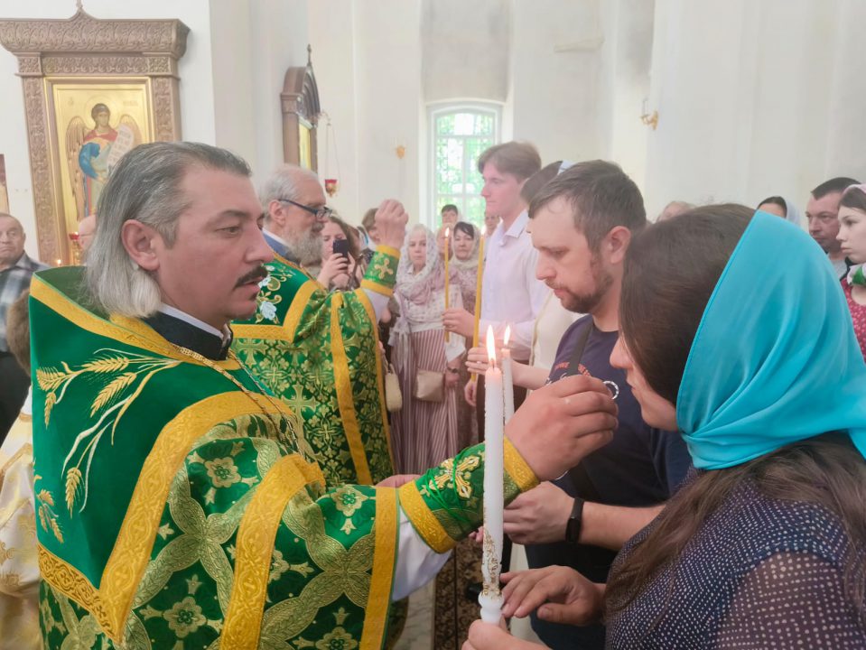 Сначала православные верующие собрались на праздничную Божественную Литургию, которую возглавил настоятель храма протоиерей Александр Крюков в сослужении клирика иерея Элизбара Иванова и протоиерея Михаила Бакуна, настоятеля храма Святой Троицы д. Троице-Кочки.