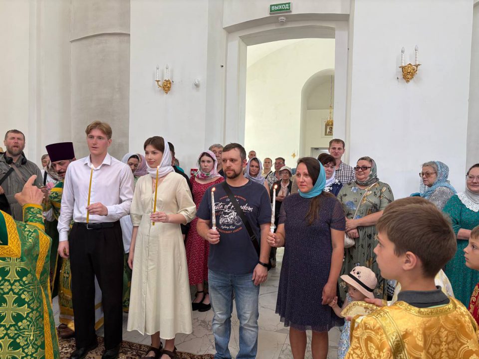 В этот день прекрасной традицией стало обручение пар, готовящихся к Таинству Венчания.Среди них — Константин Колышкин и Анастасия, сын клирика Преображенского собора и его невеста; семейную пару Суворовых Сергея и Ольгу. Многодетным семьям вручили подарки и грамоты за вклад в воспитание православных детей.