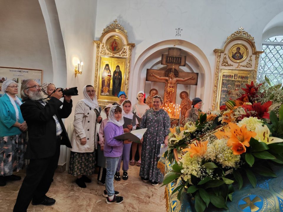 В Богослужении также приняли участие воспитанники Воскресной школы при храме Иерусалимской Божией Матери. Ребята исполнили изобразительные антифоны под регентством Чихалиной Веры Владимировны.